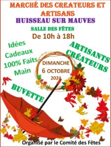 Dimanche 5 octobre : Marché d’automne de Huisseau sur Mauves (45), salle des fêtes de 10H à 18H
