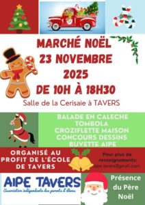 Dimanche 23 novembre : Marché de Noël de Tavers (45), Salle de la Cerisaie, 10H-18H30
