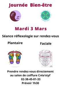 Mardi 3 Mars : Journée bien-être au salon de coiffure Créa’Styl’ à Baule (45)